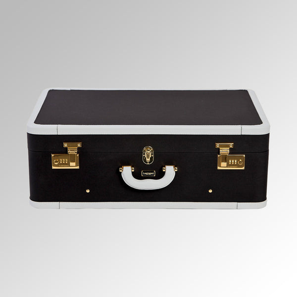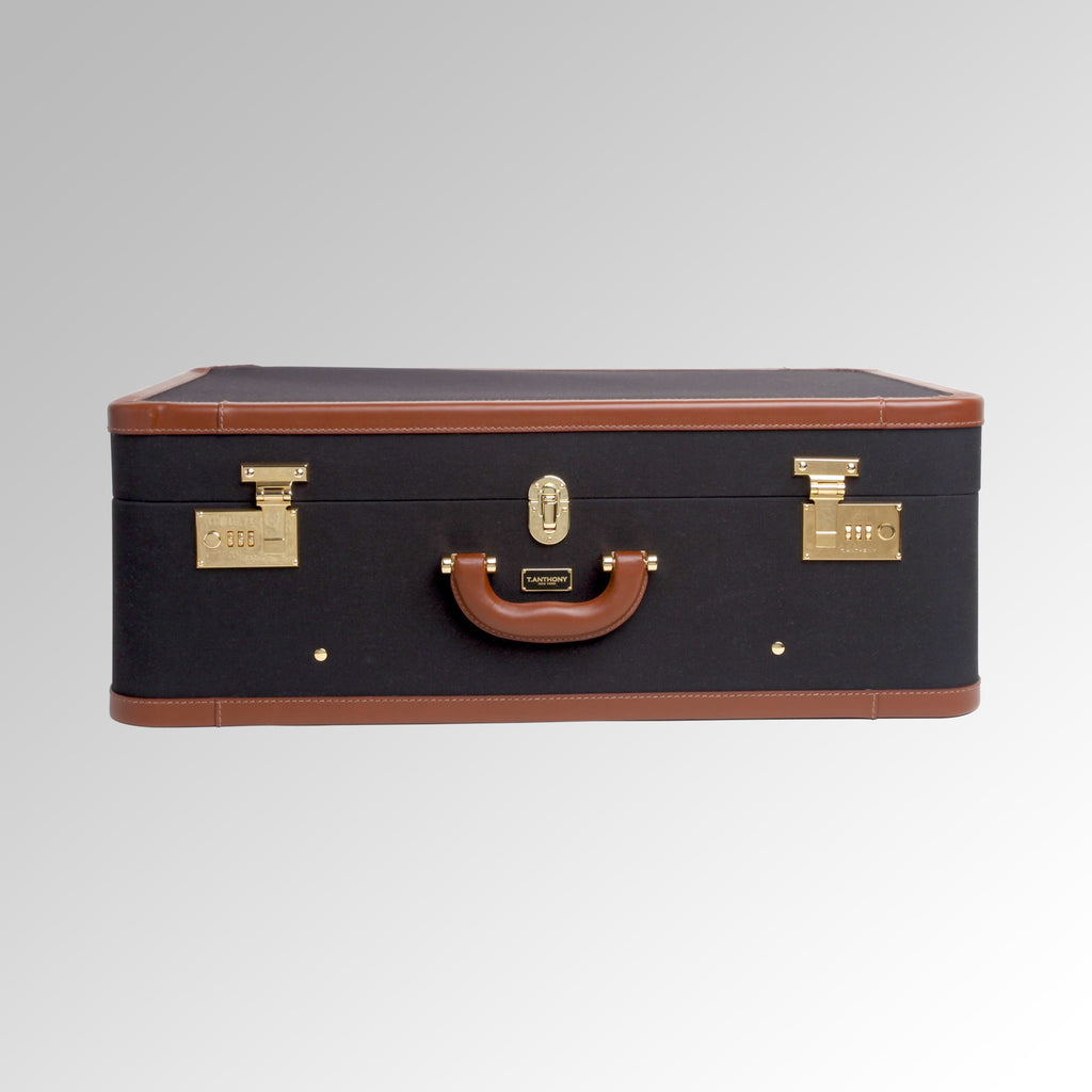 The original T. Anthony luggage, this elegant valise has become an icon  of American design. Made with our extremely strong canvas and full grain leather this packing case defines sturdy to a “T”.  Built on hardwood frames accented with solid brass hardware and combination locks it makes a smart stylish statement while perfectly organizing your must needed travel items.