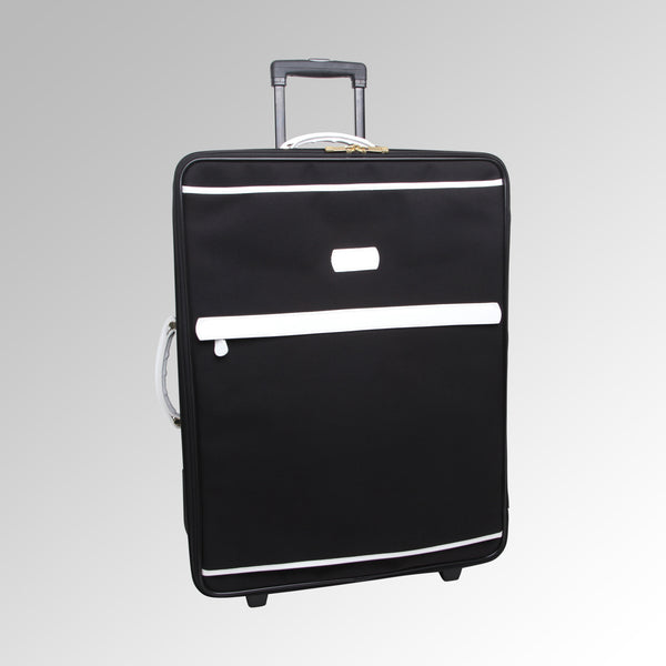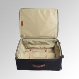 Crafted from durable 3 ply canvas and trimmed in sturdy leather our wheeled packing cases are made to last. This size wheeled packing case is suitable for medium length trips of 4 to 5 days. Hidden, retractable handle. Two leather handles. Two exterior zip pockets. Two interior zip pockets. Add a bag strap. Combination lock.