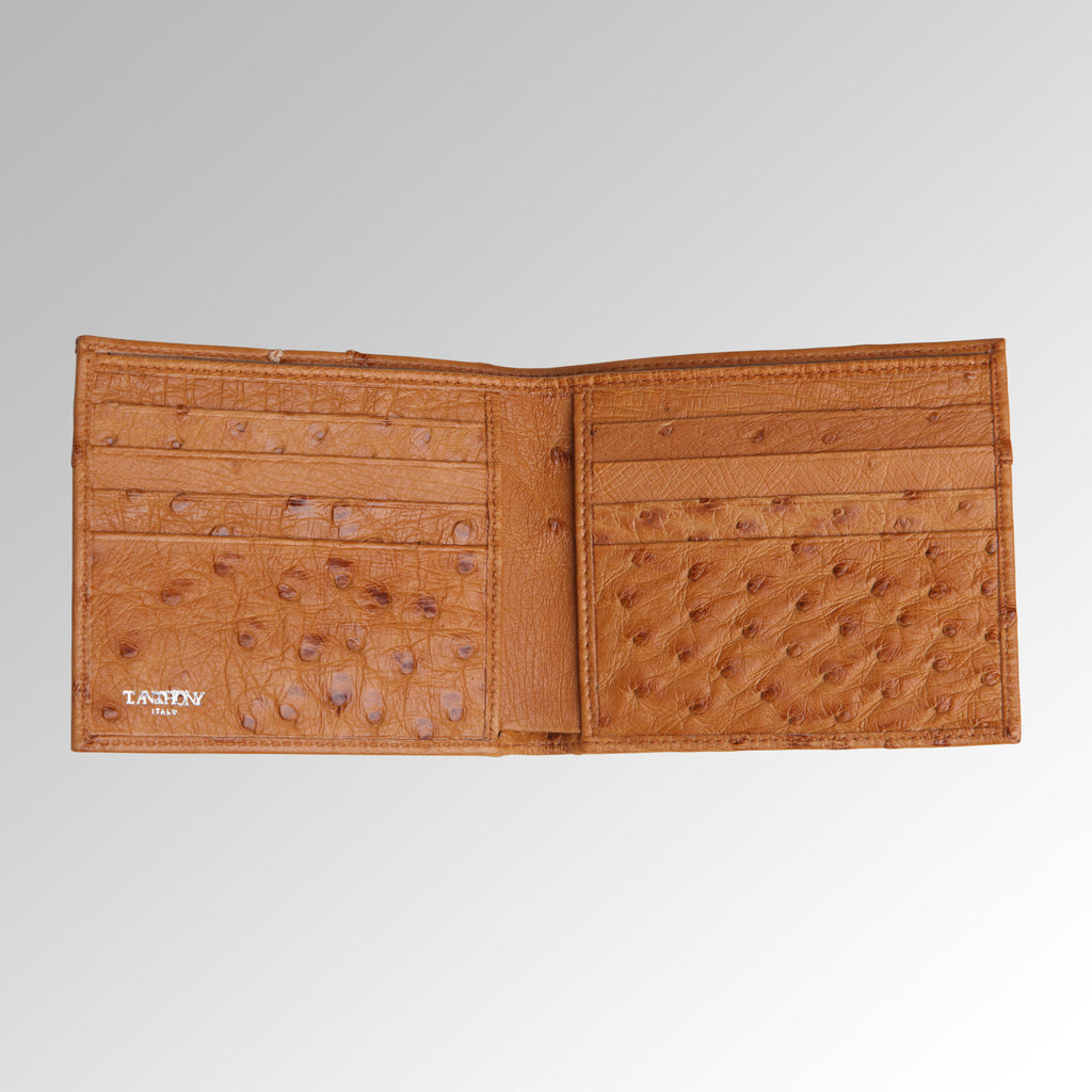 This customer favorite features a currency compartment, eight credit card slots and two hidden compartments. Hand crafted in exotic ostrich.