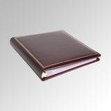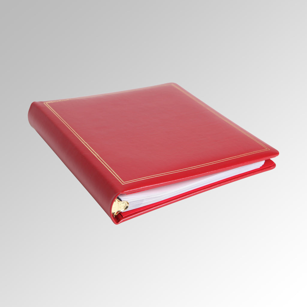 30 11" X 14" archival quality polypropylene sleeves. 4 ring binder. Gold tooling on cover. Traditional fullgrain leather.