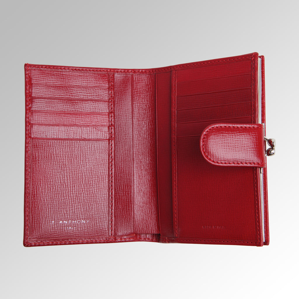 FRAMED FRENCH PURSE 1345NRD $ 165.00 Click 'Personalize' for Complimentary Engraving Red - $ 165.00 Black - $ 165.00 Quantity Personalize This variant is currently sold out. Please fill in the form below if you'd like to be notified when it becomes available. Description Style - 1345 This classic French wallet has a large currency compartment, ten credit card slots, six slip pockets and an exterior framed change compartment. Made from scratch resistant grained calf leather. 5.25” x 3.5