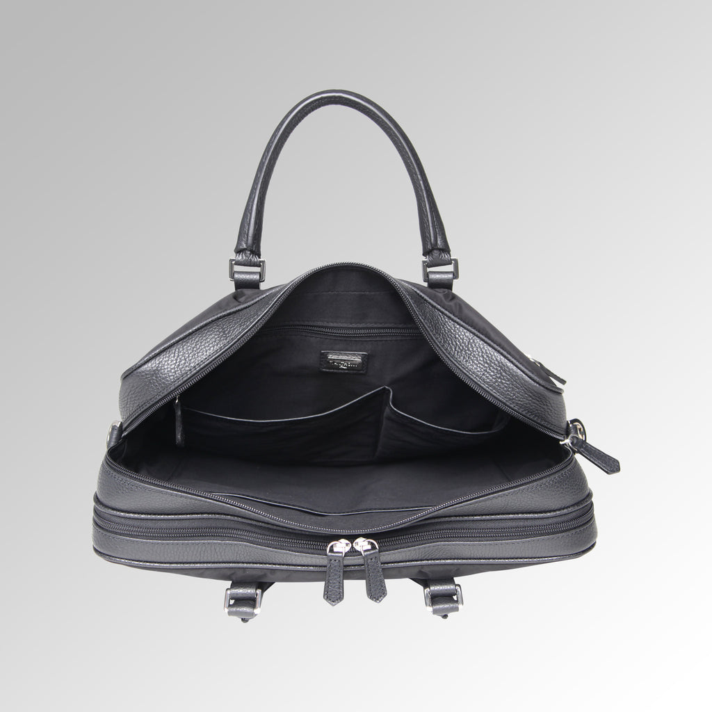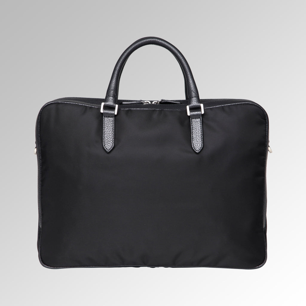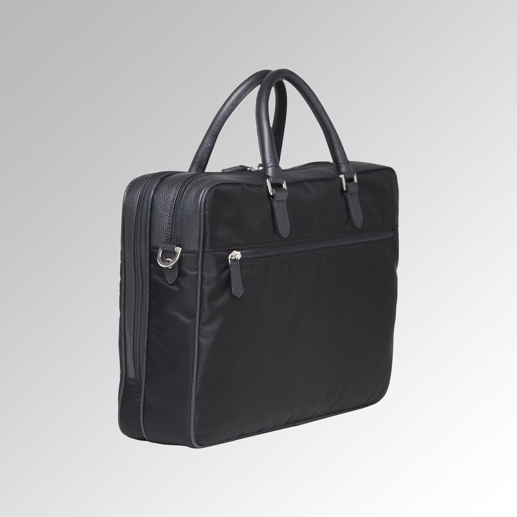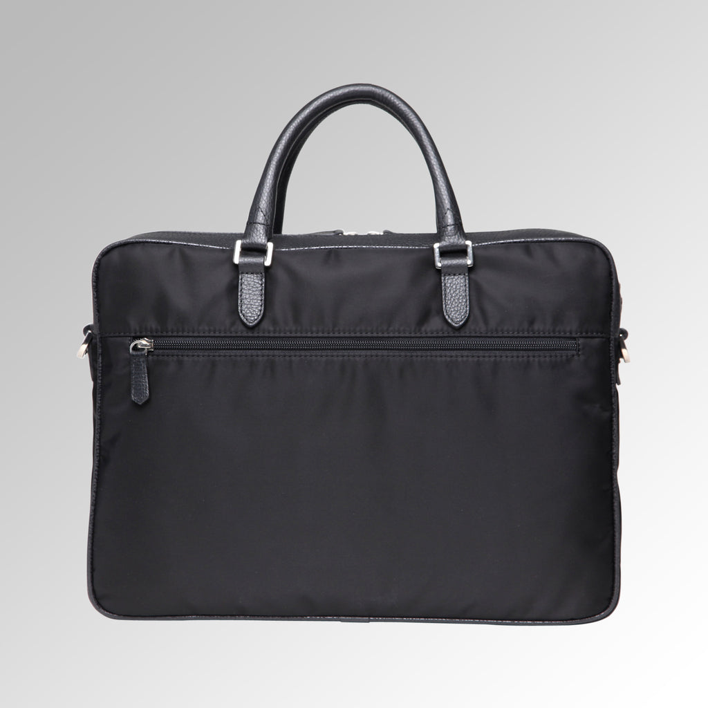A business essential for the organized professional. Crafted in smooth, durable microfiber nylon and scratch resistant grain leather trim. There are two large main zippered compartments with interior pockets for tablet, phone and other small items. There is an exterior zippered compartment and a removable, adjustable shoulder strap.