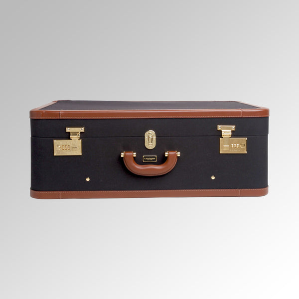 The original T. Anthony luggage, this elegant valise has become an icon  of American design. Made with our extremely strong canvas and full grain leather this packing case defines sturdy to a “T”.  Built on hardwood frames accented with solid brass hardware and combination locks it makes a smart stylish statement while perfectly organizing your must needed travel items.